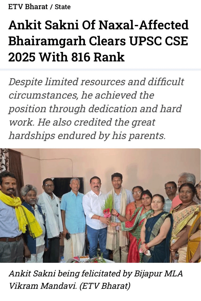नक्सल प्रभावित क्षेत्र भैरमगढ़ के अंकित सकनी ने रचा इतिहास