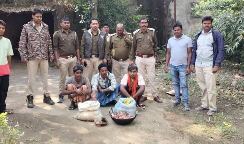 जंगली सूअर का शिकार करने वाले 3 शिकारी गिरफ्तार