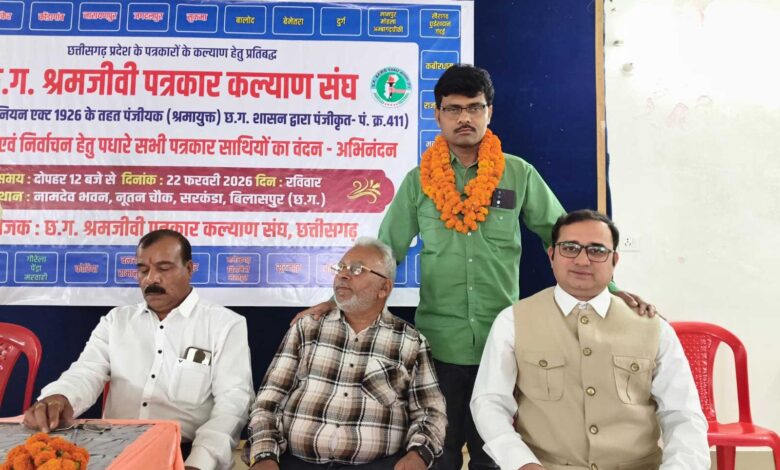 बिलासपुर। छत्तीसगढ़ श्रमजीवी पत्रकार कल्याण संघ के संगठन विस्तार और मजबूती की दिशा में एक महत्वपूर्ण कदम उठाते हुए गणेश तिवारी को बस्तर संभाग का अध्यक्ष नियुक्त किया गया। यह निर्णय बिलासपुर जिले के ग्राम सरकंडा स्थित नामदेव भवन में आयोजित एक गरिमामय कार्यक्रम में सर्वसम्मति से लिया गया। कार्यक्रम में छत्तीसगढ़ के विभिन्न जिलों से बड़ी संख्या में पत्रकारों की उपस्थिति रही, जिससे आयोजन को प्रदेश स्तरीय स्वरूप प्राप्त हुआ।