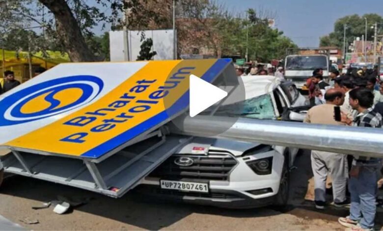 यूपी में सपा नेता की चलती कार पर गिरा भारी भरकम पोल, मौके पर ही चली गई जान, मौत का लाइव वीडियो आया सामने