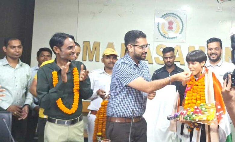 अंतर्राष्ट्रीय खिलाड़ी दिव्या रंगारी का जगह-जगह सम्मान कलेक्टर ने शॉल भेंट की, मिठाई खिलाकर किया स्वागत एवं सम्मान
