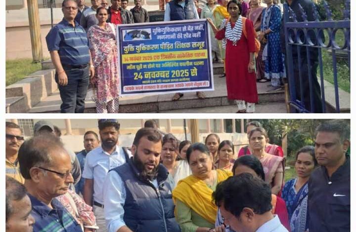 रायपुर, छत्तीसगढ़ में युक्तियुक्तीकरण प्रक्रिया से उत्पन्न गंभीर अव्यवस्थाओं, वरिष्ठता निर्धारण की त्रुटियों, न्यायालयीन प्रकरणों के बावजूद वेतन-रोके जाने, तथा नियम विरुद्ध पदस्थापना-पदांकन जैसी समस्याओं के विरोध में युक्तियुक्तीकरण पीड़ित शिक्षक संघ, छत्तीसगढ़ द्वारा आज 14 नवंबर 2025 को रायपुर स्थित निर्धारित धरना स्थल पर एक दिवसीय शांतिपूर्ण धरना प्रदर्शन आयोजित किया गया।