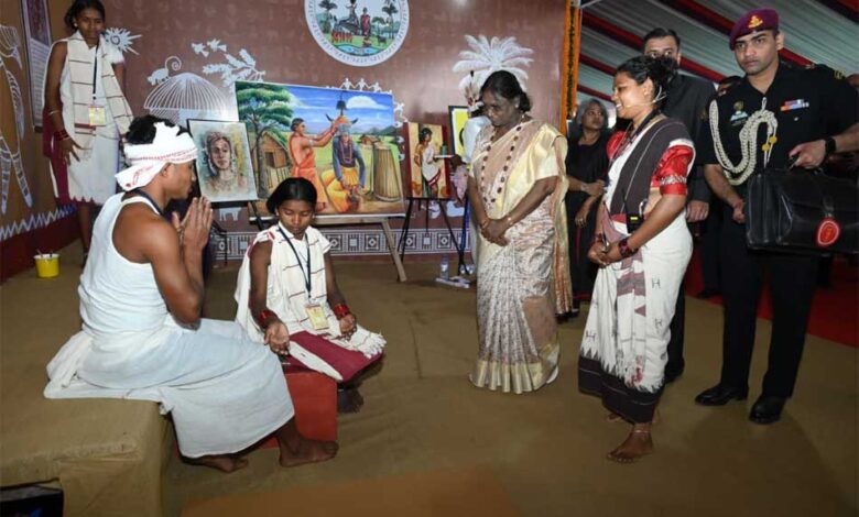 जनजातीय परंपराओं और संस्कृति पर आधारित भव्य प्रदर्शनी का राष्ट्रपति श्रीमती द्रौपदी मुर्मु ने किया अवलोकन