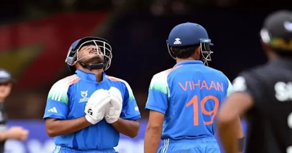 बुलावायो। भारतीय अंडर-19 पुरुष क्रिकेट टीम ने 2026 आईसीसी अंडर-19 क्रिकेट विश्व कप में अपने शानदार प्रदर्शन को जारी रखते हुए ग्रुप चरण के एक बारिश से प्रभावित मुकाबले में न्यूजीलैंड को सात विकेट से शिकस्त दी। यह मुकाबला शनिवार को जिम्बाब्वे के क्वींस स्पोर्ट्स क्लब में खेला गया।